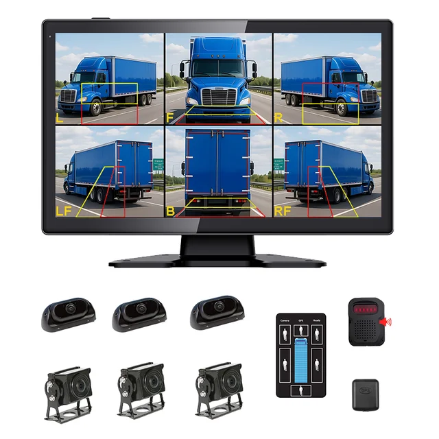 7 Inch QUAD Blind Spot Camera System Truck 360 Degree View System